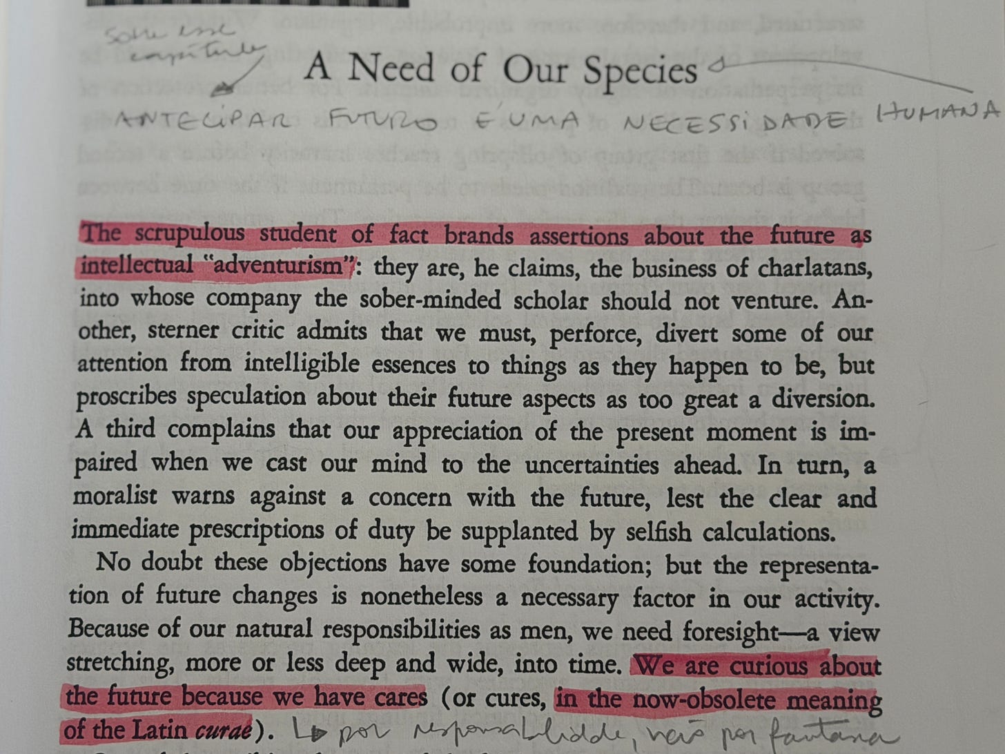 Essa é uma fricção que existe há anos. Neste trecho do clássico The Art of Conjecture, um dos fundadores do conceito de futurismo, o francês Bertrand de Jouvenel inicia seu livro, escrito em 1967, respondendo às mesmas objeções décadas atrás. O que nos mostra que o campo até evoluiu em ferramentas, mas a resistência social permanece a mesma.