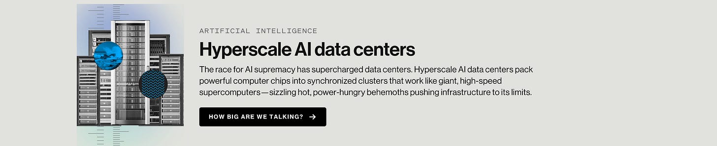 Empresas como OpenAI, Google, Amazon, Microsoft e Meta estão investindo centenas de bilhões de dólares nesse tipo de infraestrutura. O custo é significativo: os maiores centros consomem mais de um gigawatt de eletricidade (suficiente para abastecer cidades inteiras), sendo mais da metade proveniente de combustíveis fósseis, o que agrava as mudanças climáticas e contradiz os esforços globais de transição para energia limpa.