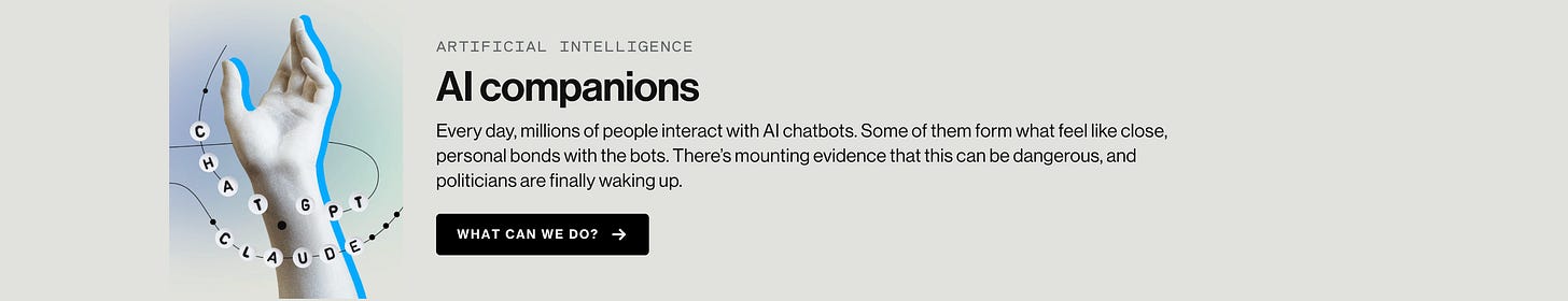 Embora não seja a primeira vez que lemos sobre AI Companions, entendo por que o MIT trouxe esse tópico nas suas tendências do ano. Uma coisa é ouvir falar sobre casos de humanos se casando com IAs lá no Japão, e outras culturas afastadas se relacionando com IA. Num primeiro momento, a sociedade acha esquisito e todo mundo comenta. Mas outro momento é quando esse comportamento se torna mainstream porque já se integrou no tecido social. É disso que a MIT fala.