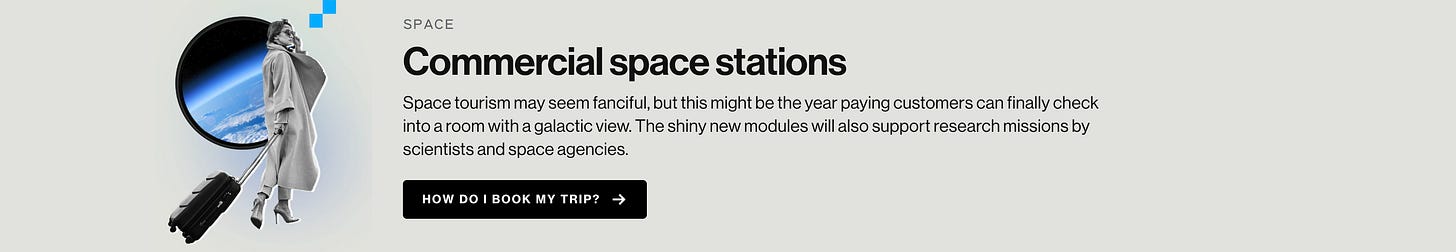 MIT sempre traz uma trend conectada a evolução comercial do espaço. O acesso ao espaço é, até então, exclusivamente controlado por governos através de agências espaciais nacionais como a NASA. A Estação Espacial Internacional (ISS), que representa essa era, está envelhecendo e deve ser trazida da órbita para o oceano em 2031. O grande desafio era o custo proibitivo e a falta de alternativas para pesquisa e exploração espacial. Sem opções comerciais, empresas e pesquisadores dependiam totalmente de programas governamentais, limitando drasticamente as oportunidades de inovação no espaço.
